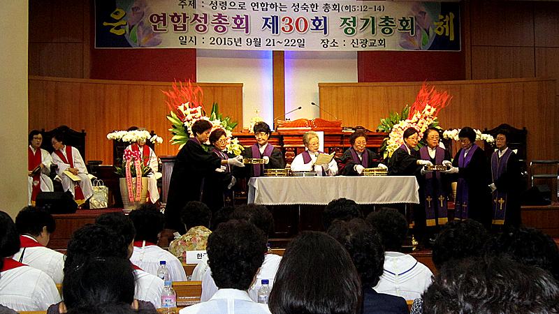 이날 신임 총회장 김소자 목사와 부총회장 이은환 목사, 서수옥 목사 2명이 선출되다.